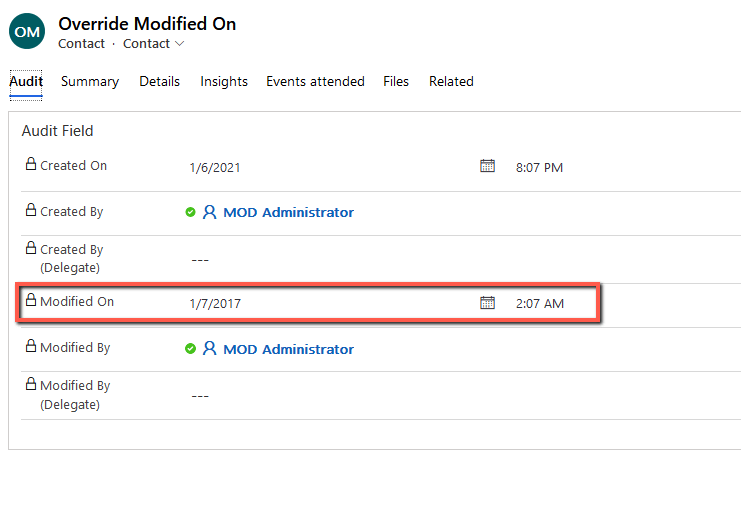 CreatedOnOverriddenCreatedOnYesNA